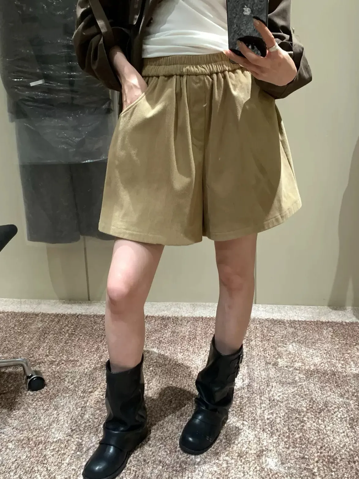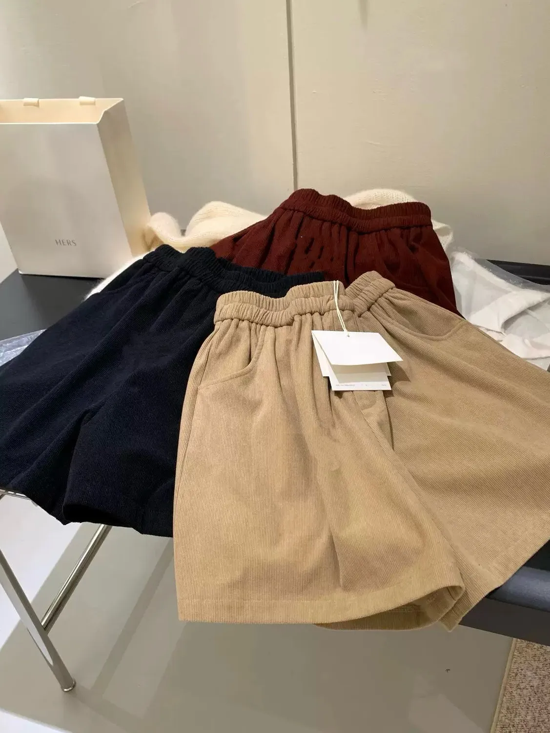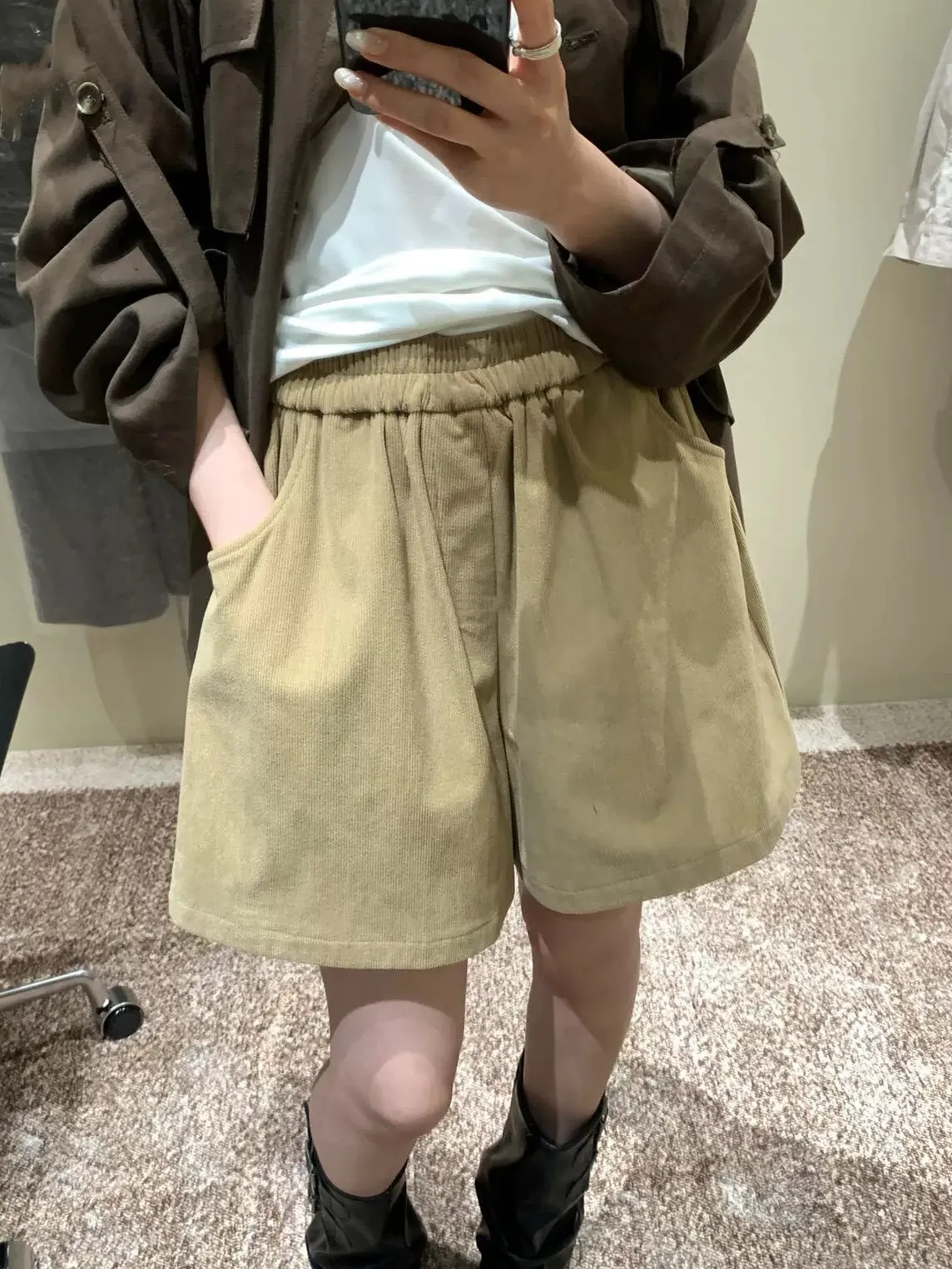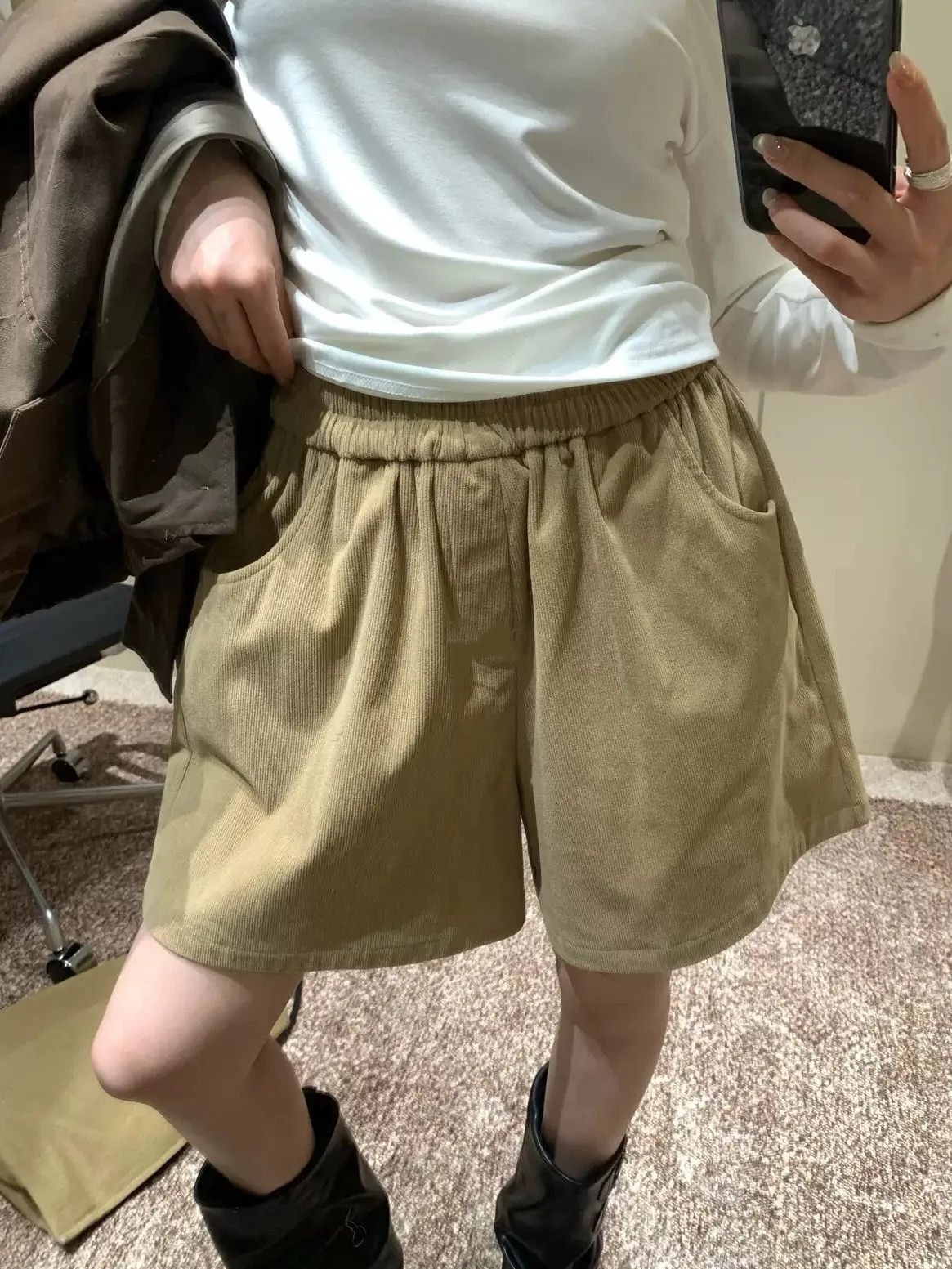 舒適感爆棚/到哪都自在的燈芯絨彈性腰短褲