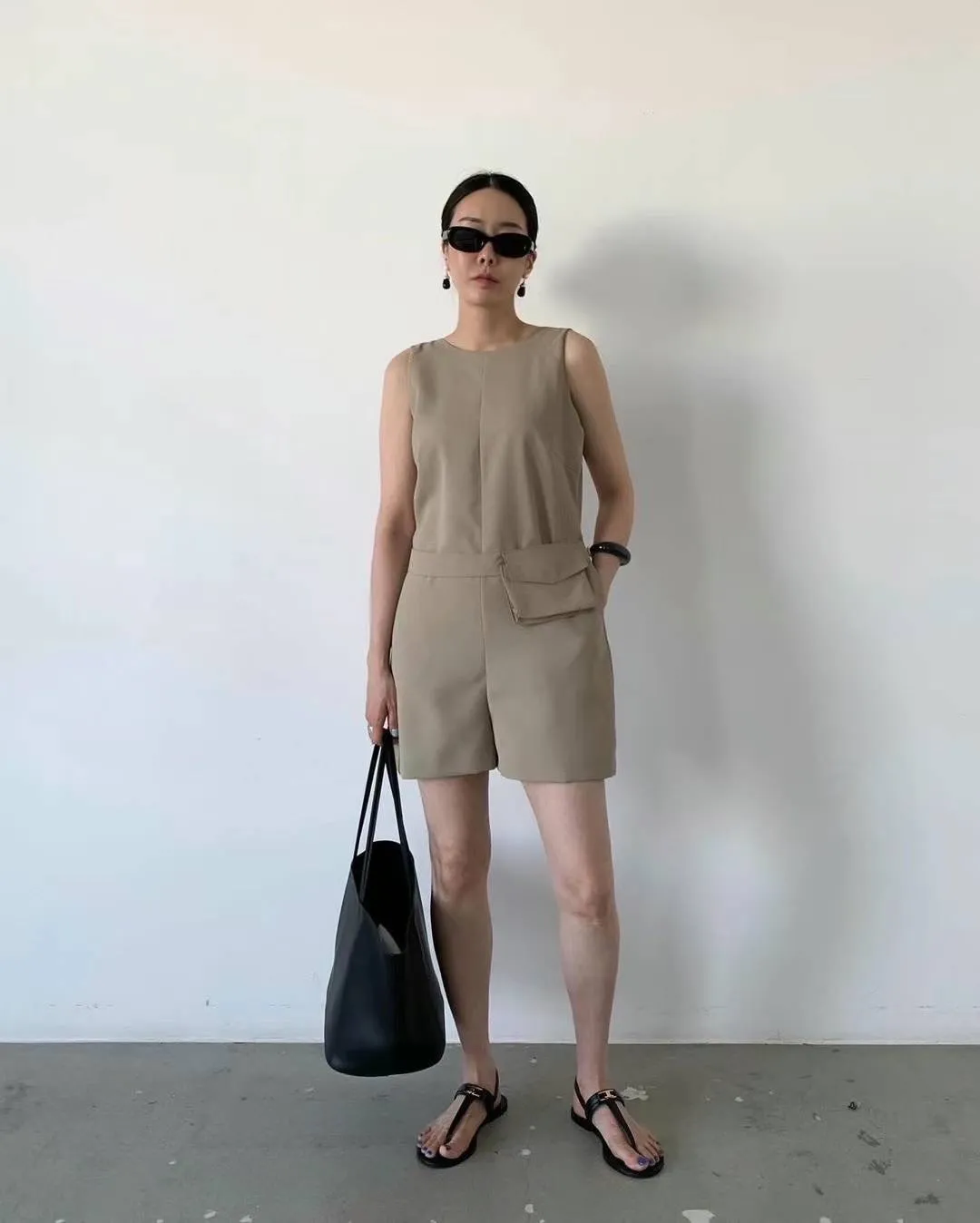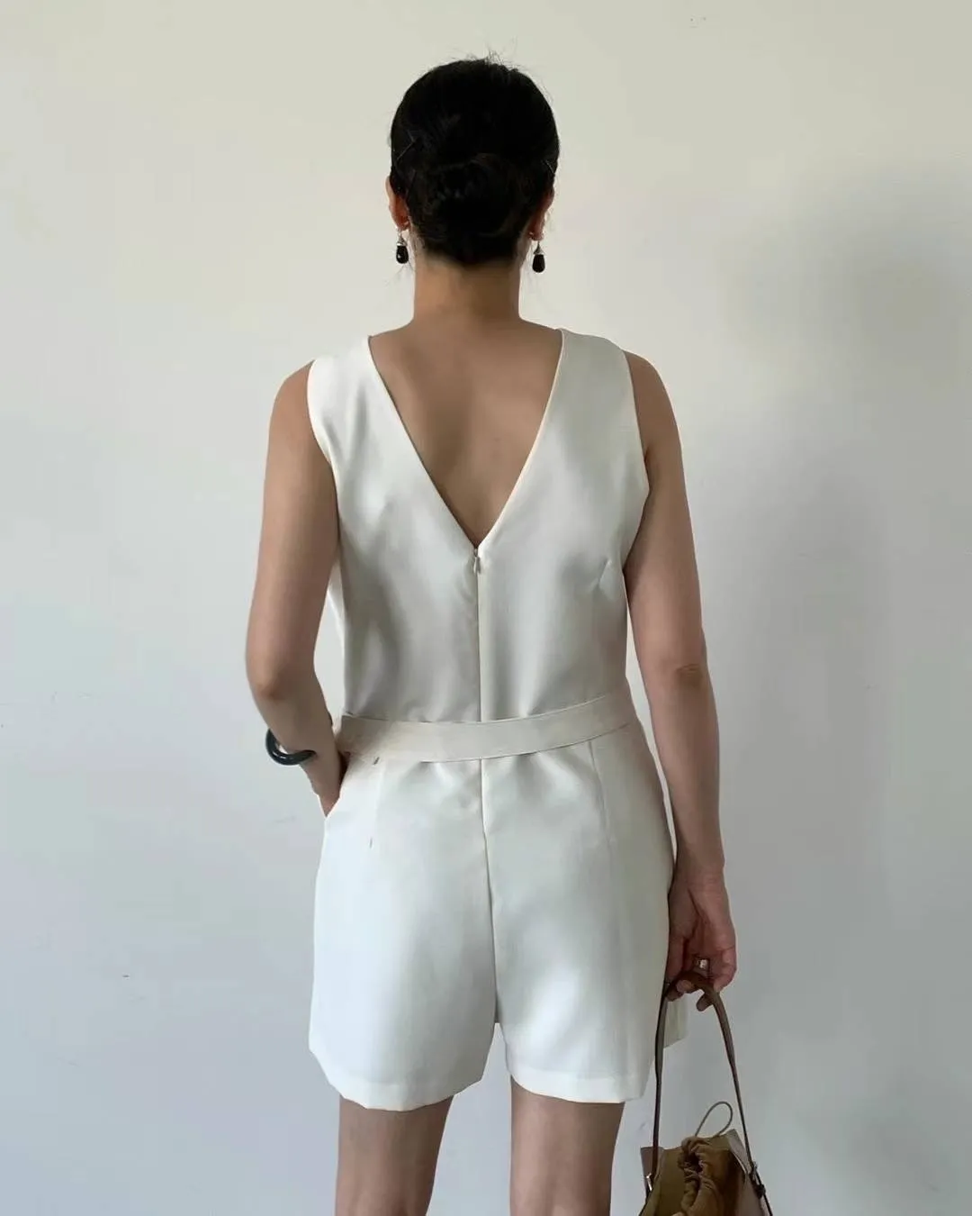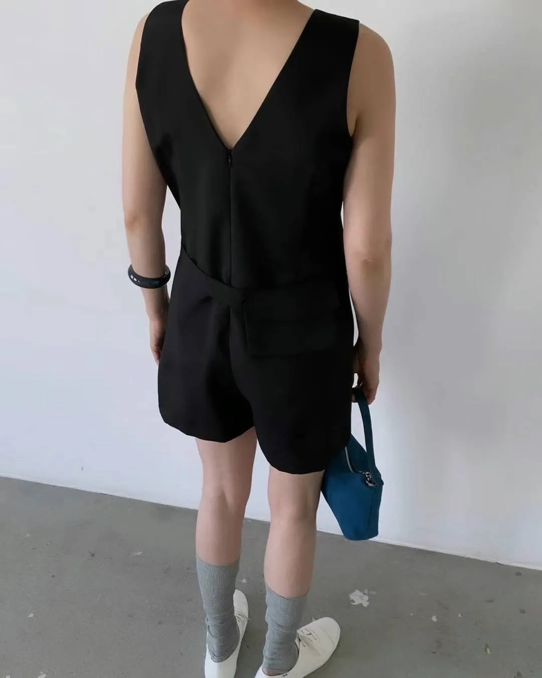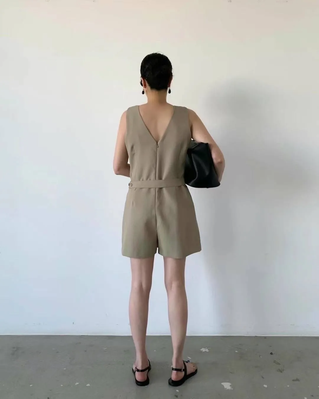 視覺上有種消暑降溫的感覺後V領連身褲~