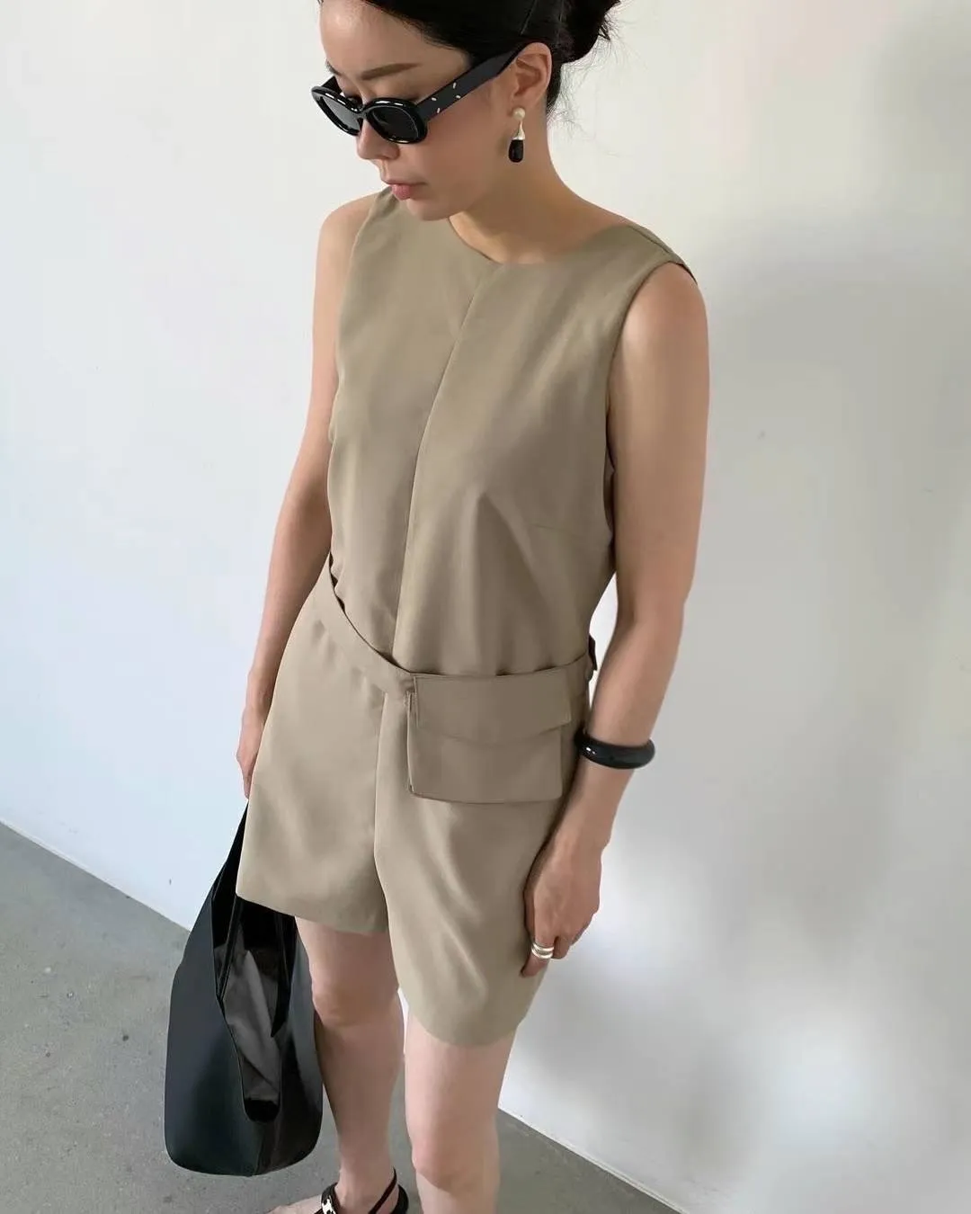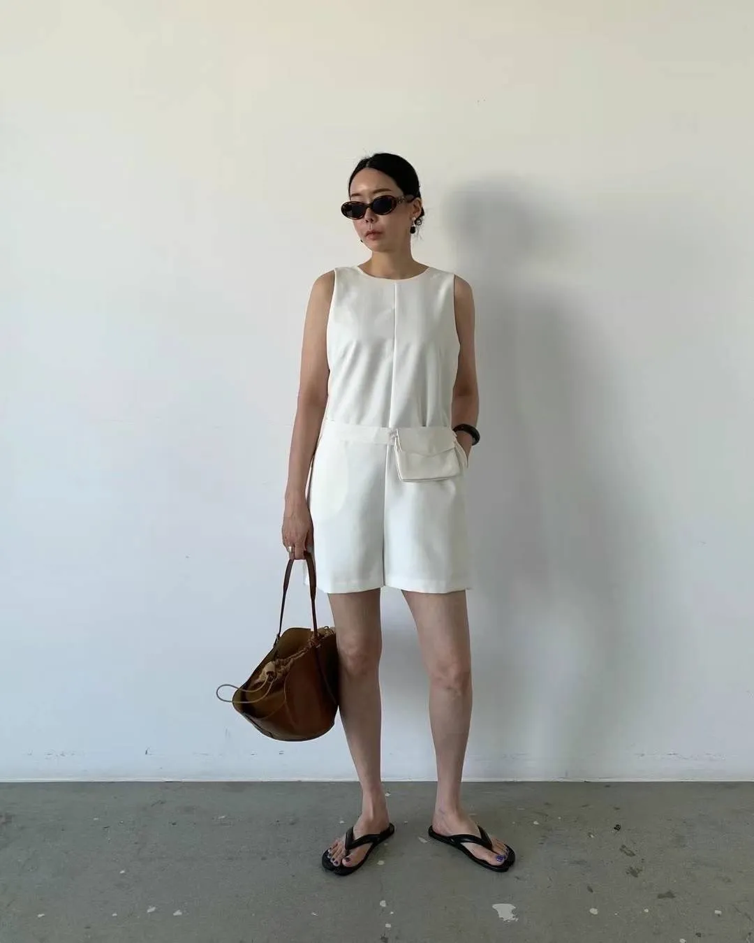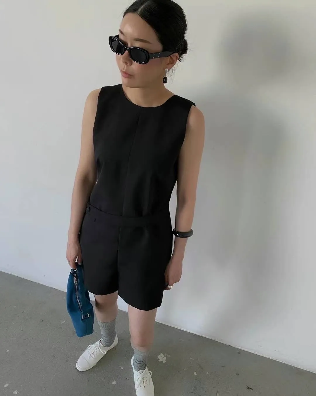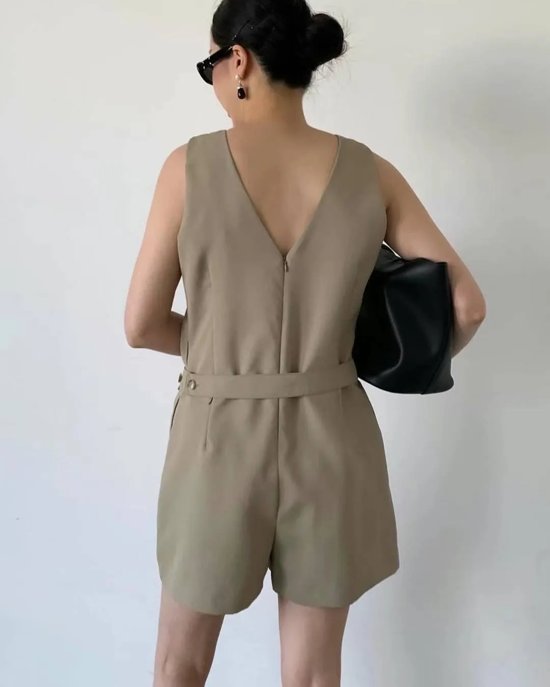 視覺上有種消暑降溫的感覺後V領連身褲~