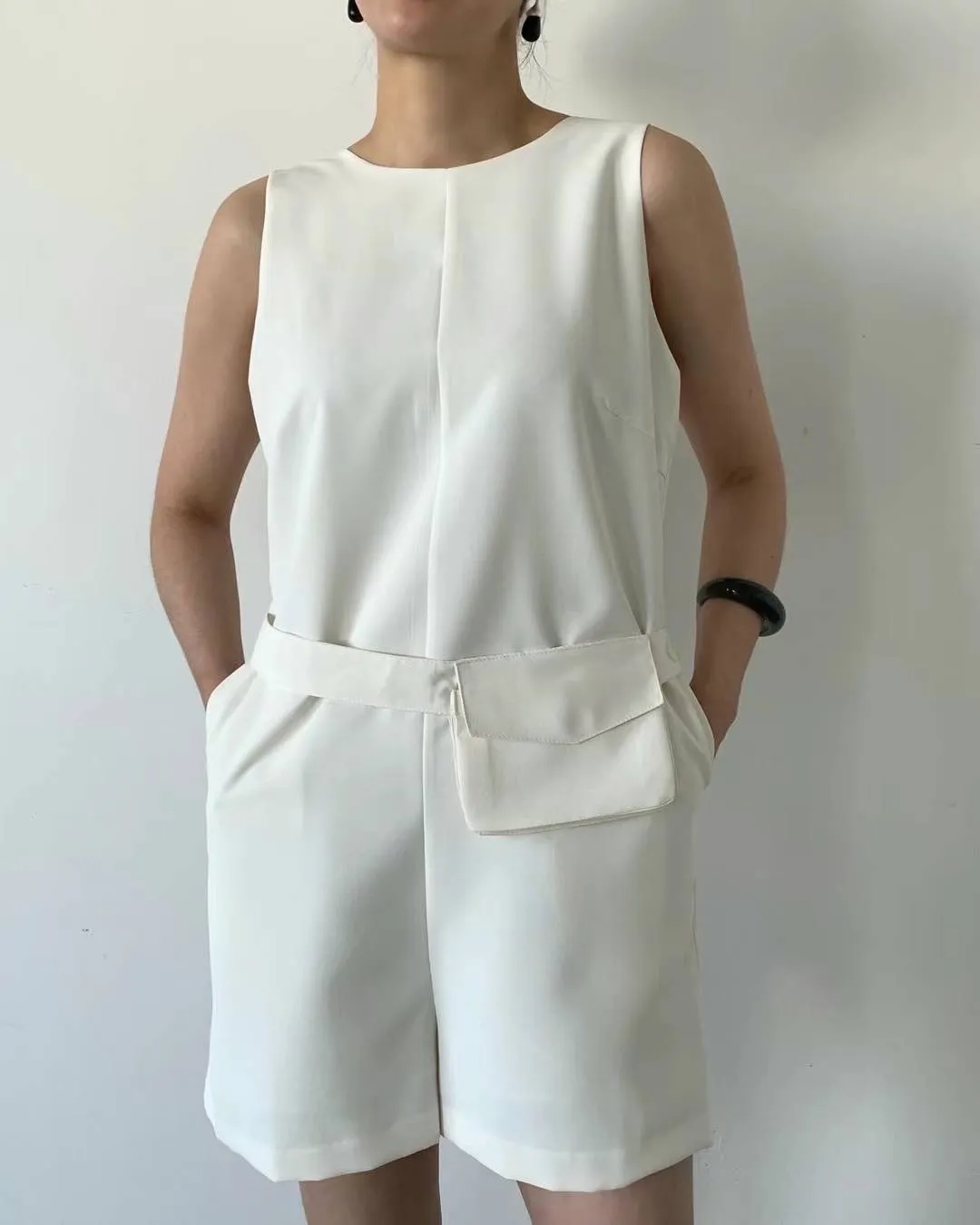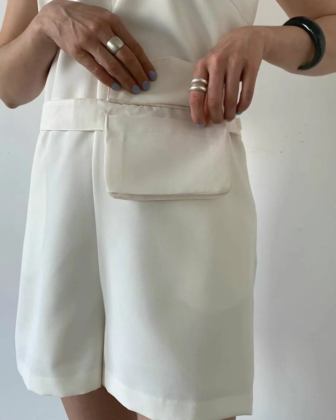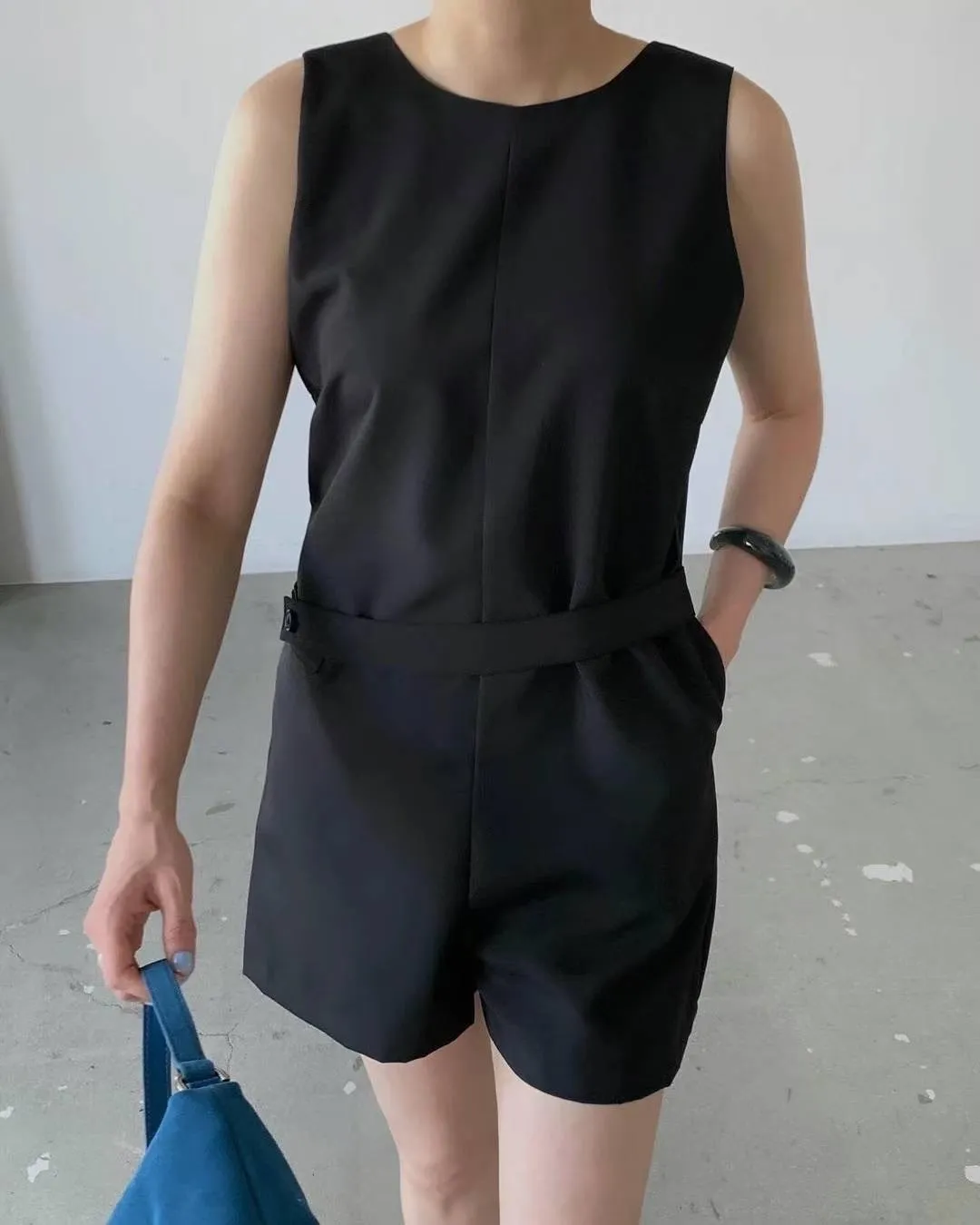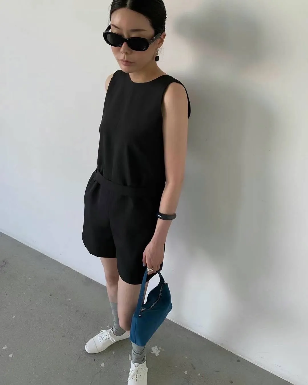 視覺上有種消暑降溫的感覺後V領連身褲~